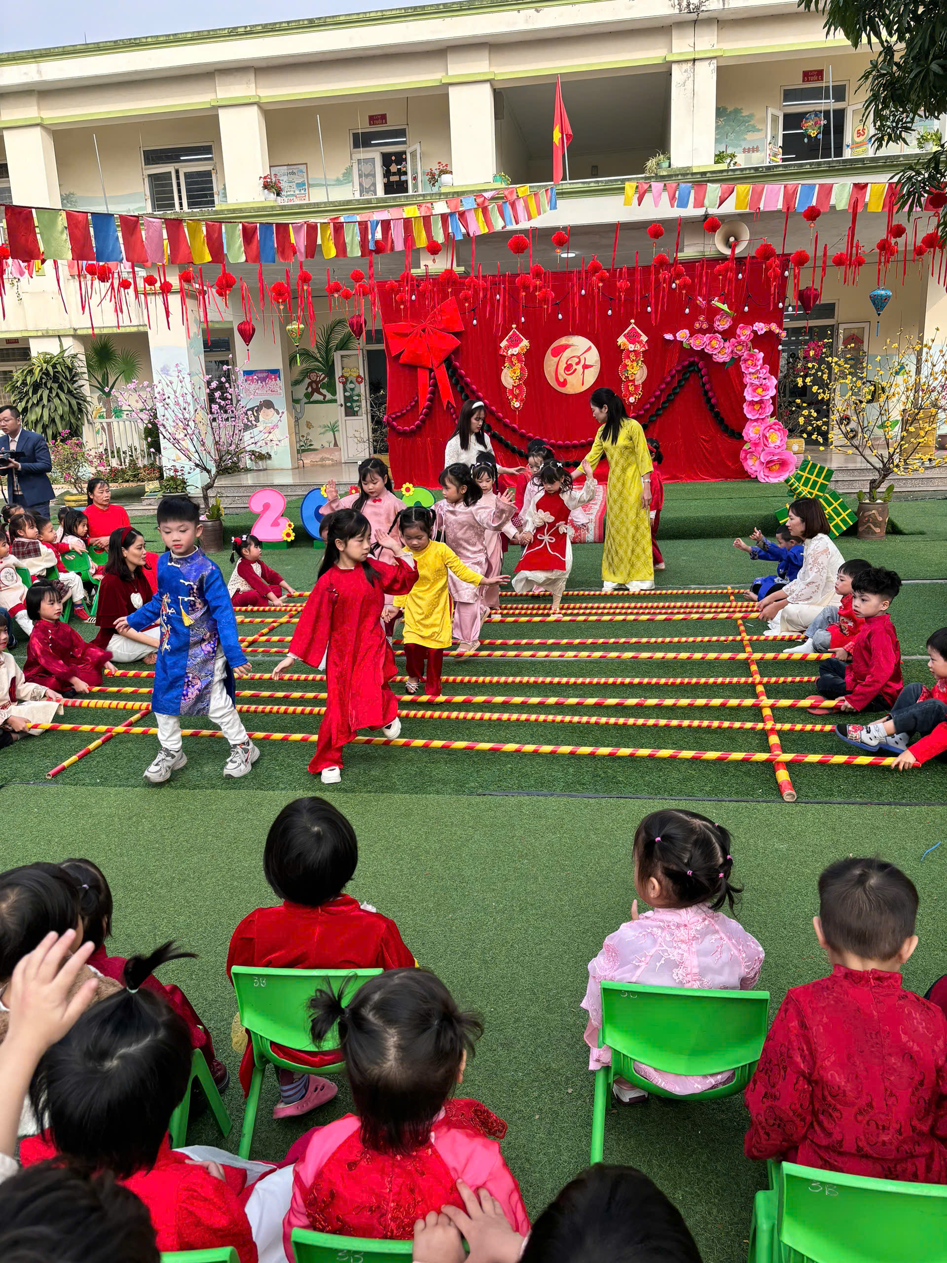 🎋 Không khí chương trình càng thêm sôi nổi với tiết mục nhảy sạp có sự tham gia của cô và trò. Những bước chân nhịp nhàng, những tiếng cười giòn tan đã xóa nhòa mọi khoảng cách, tạo nên khoảnh khắc gắn kết đầy ấm áp – nơi các con không chỉ học mà còn được vui chơi, sẻ chia và cảm nhận tình yêu thương từ thầy cô.