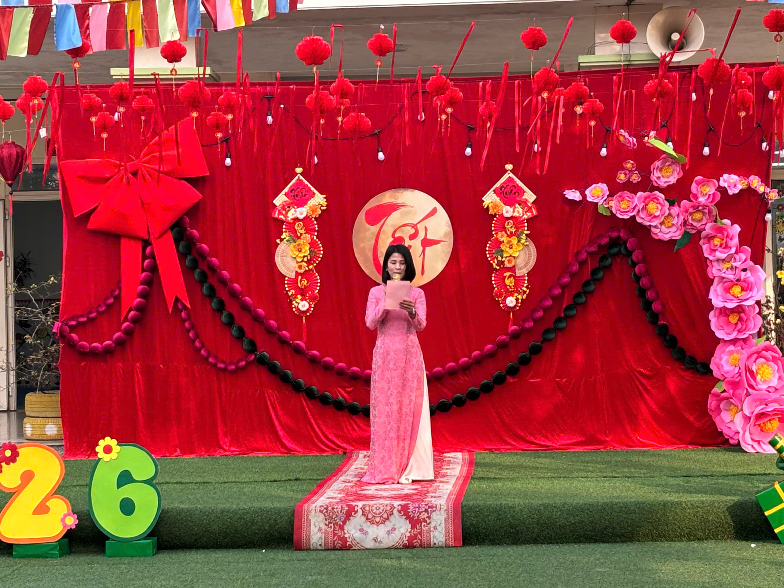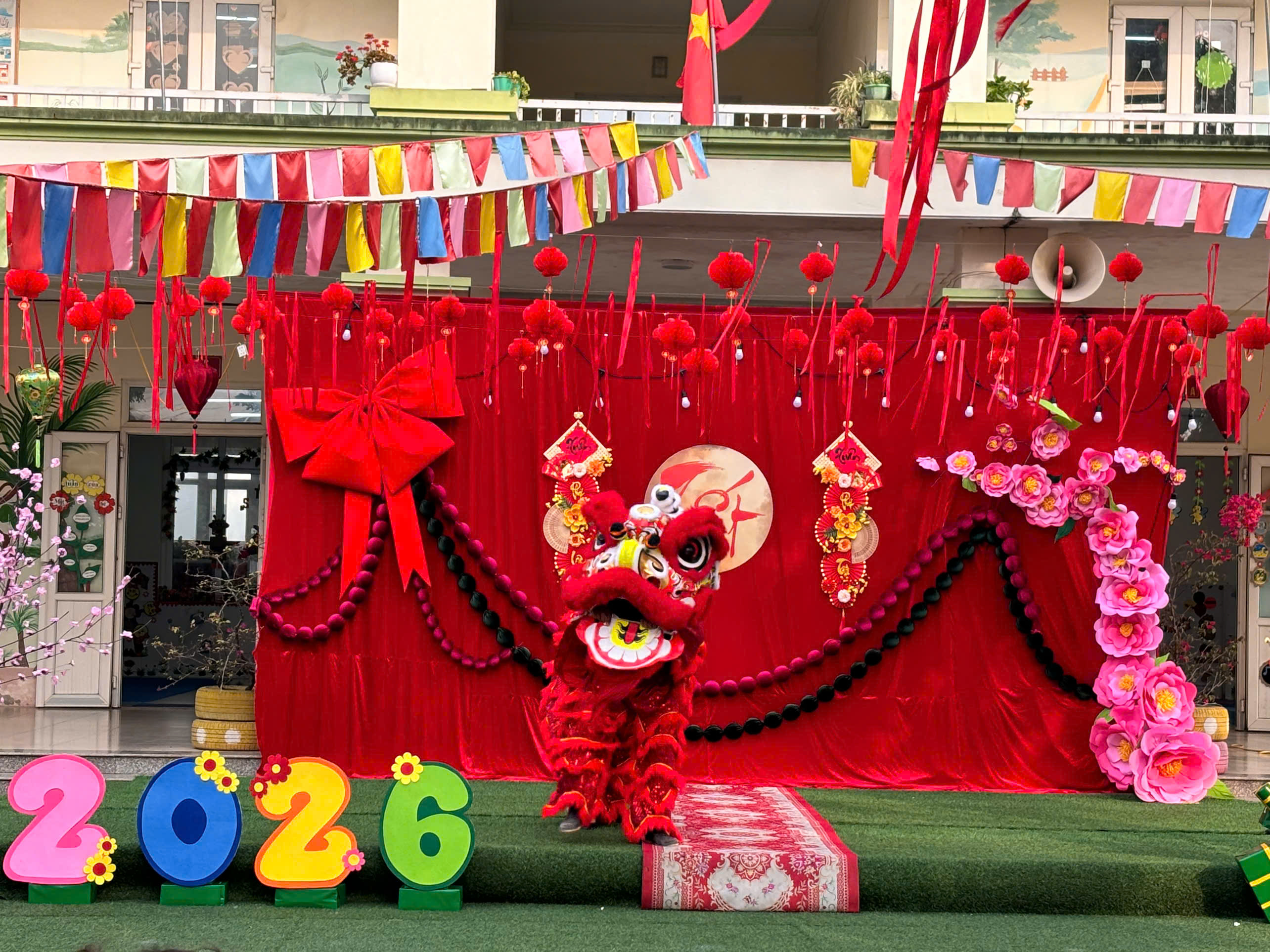 Sáng ngày 03/02, trong không khí se lạnh của những ngày đầu xuân, sân trường Mầm non Hoa Hồng như bừng sáng bởi sắc đỏ rực rỡ, tiếng cười trong veo và niềm háo hức hiện rõ trên từng gương mặt thơ ngây. Chương trình “Xuân yêu thương – Tết đong đầy” đã được tổ chức thành công, để lại nhiều cảm xúc đẹp trong lòng các bé, các cô giáo và quý phụ huynh.